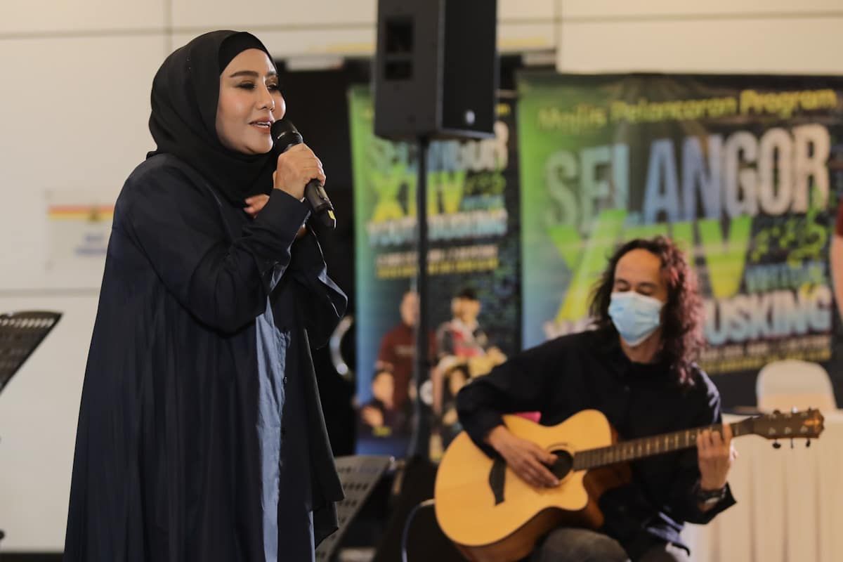 Persembahan 'Ratu Rock Malaysia' Ella atau nama sebenar Nor Zila Aminuddin ketika Majlis Pelancaran Selangor Xtiv Virtual Youth Busking di Bangunan Sultan Salahuddin Abdul Aziz Shah, Shah Alam pada 12 Ogos 2020.