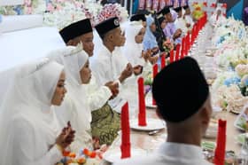 Majlis perkahwinan beramai-ramai ketika program Raikan Cinta Orang Asal peringkat Kuala Langat 2024 di Kompleks Islam Daerah Kuala Langat, Kuala Langat pada 18 Julai 2024.