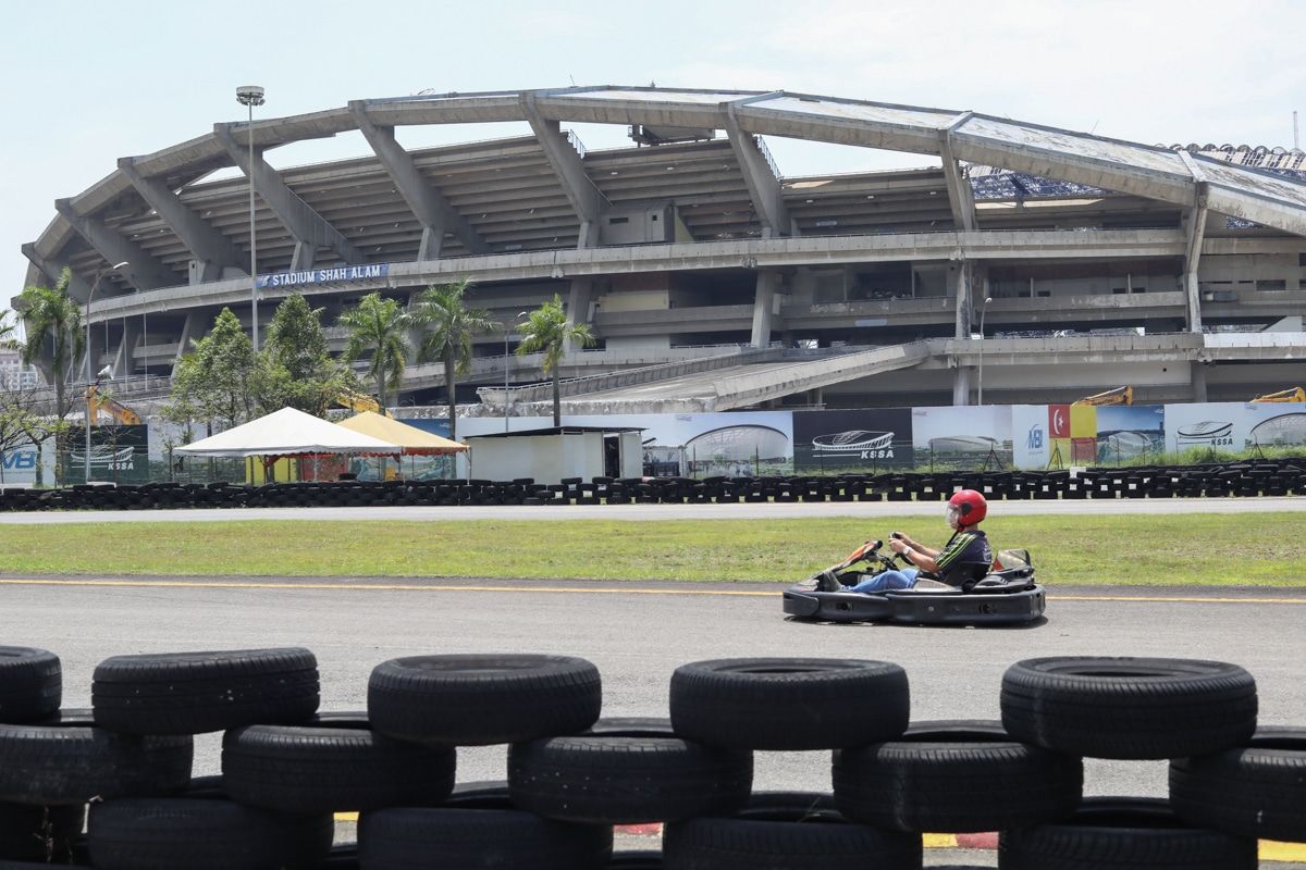 Pengunjung bermain go-kart ketika tinjauan berkenaan proses runtuhan stadium di sekitar Seksyen 13, Shah Alam pada 14 Ogos 2024.