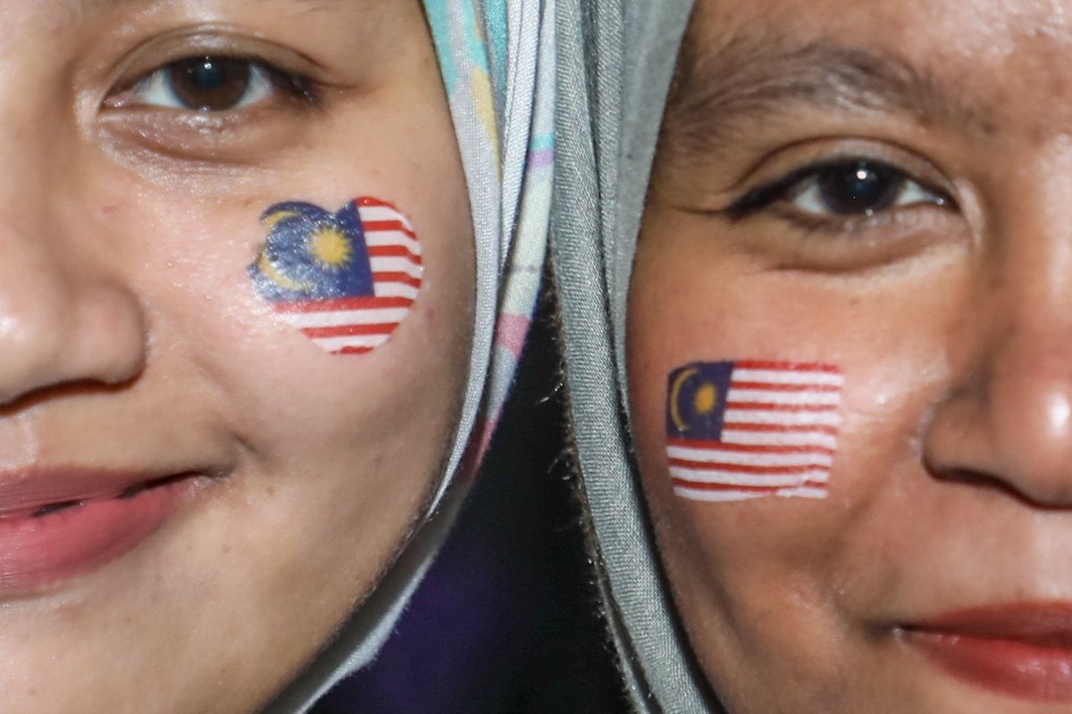 Pengunjung melukis Jalur Gemilang pada wajah mereka sempena Hari Kebangsaan ke-67 peringkat negeri di Dataran Kemerdekaan Shah Alam pada 30 Ogos 2024.