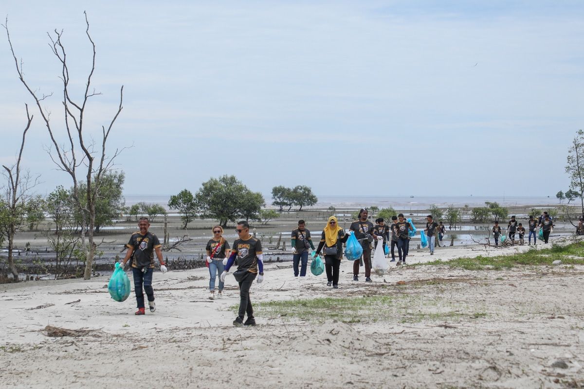 Sukarelawan mengutip sampah ketika aktiviti pembersihan pantai sempena program konvoi motosikal Hari Malaysia Team Selangor di persisiran Pantai Batu Laut, Kuala Langat pada 15 September 2024.