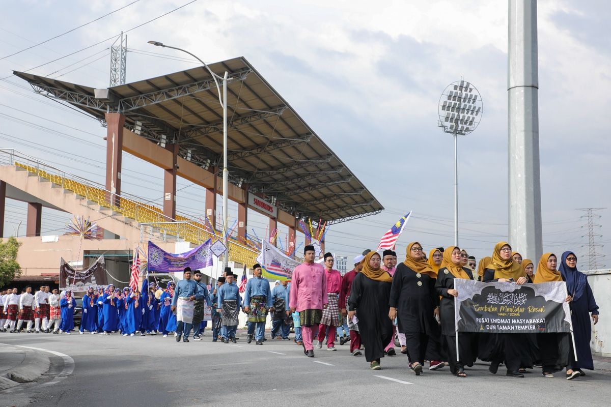 EXCO Pembangunan Wanita dan Kebajikan Masyarakat Anfaal Saari (tengah, hadapan) turut serta dalam perarakan ketika program Sambutan Maulidur Rasul dan Hari Malaysia peringkat Parlimen Selayang di sekitar berdekatan Stadium MPS, Gombak pada 16 September 2024.