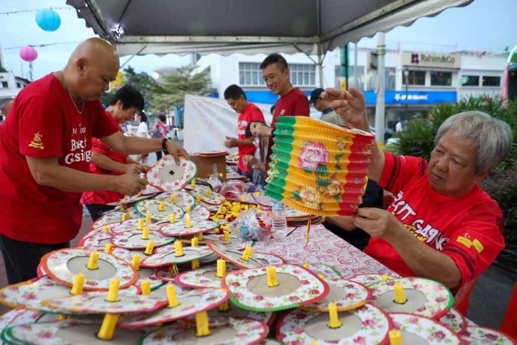 Sukarelawan membuat persiapan ketika Karnival Pakaian Traditional Cina dan Pesta Tanglung Bukit Gasing di Laman MBPJ, Petaling Jaya pada 21 September 2024.