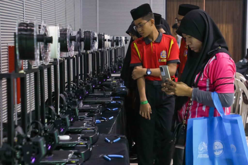 Peserta melihat proses teknologi cetakan 3D ketika majlis Penutup Malaysia Techlympics 2024 Peringkat Zon Tengah di Dewan Majlis Bandaraya Diraja Klang (MBDK), Klang pada 26 September 2024.