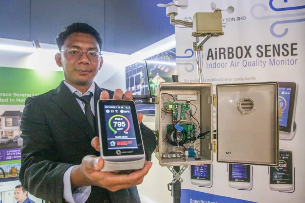 Pempamer menunjukkan alat pemeriksaan tahap kebersihan udara ketika majlis Perasmian Klang Sustainable Convention 2024 ESG FOR SDG di Dewan Majlis Bandaraya Diraja Klang, Klang pada 10 Oktober 2024. Foto FIKRI YUSOF/MEDIA SELANGOR