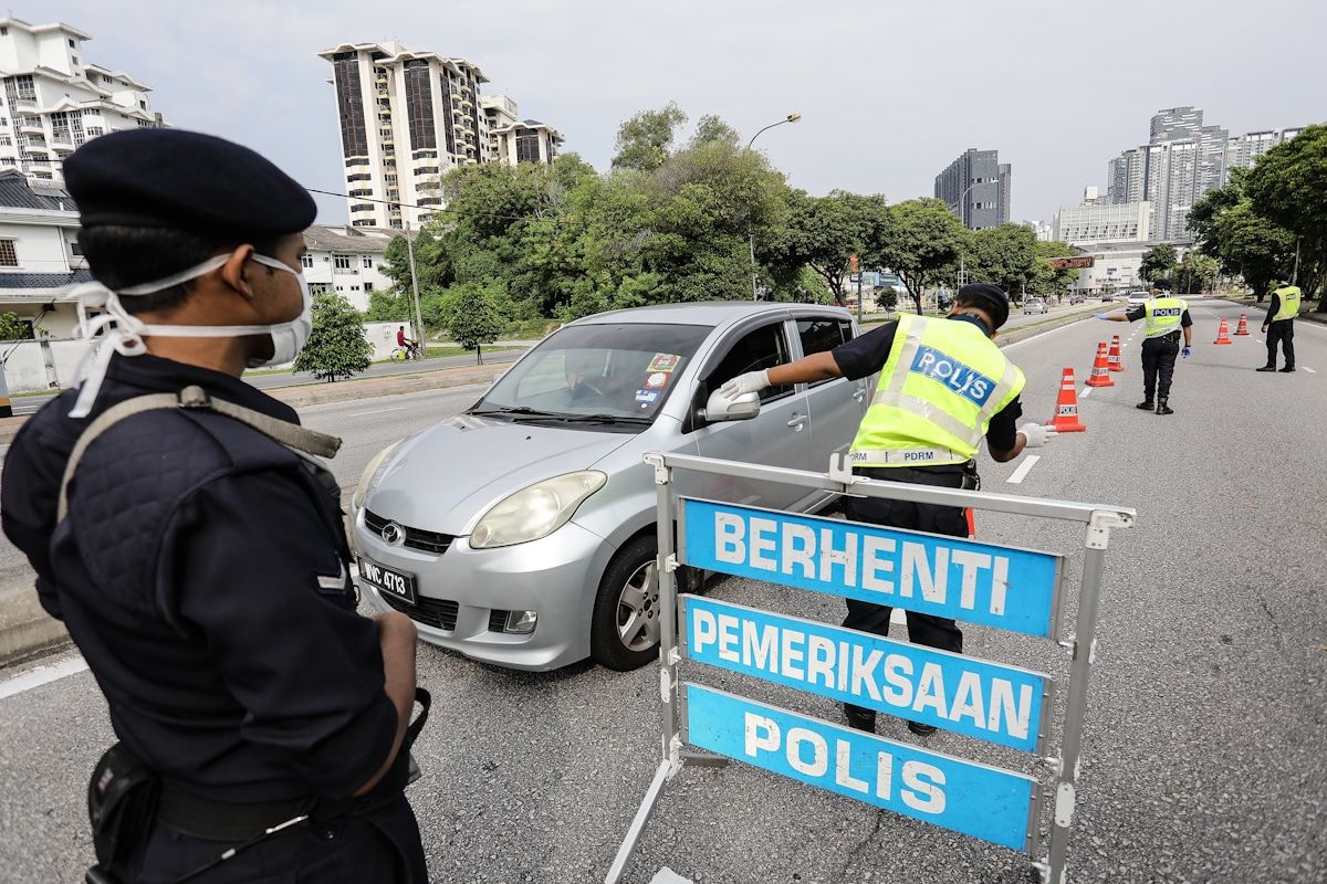 Pihak polis melakukan sekatan jalan raya di Jalan Bangsar pada hari kesembilan pelaksanaan Perintah Kawalan Pergerakan berikutan penularan Covid-19.
