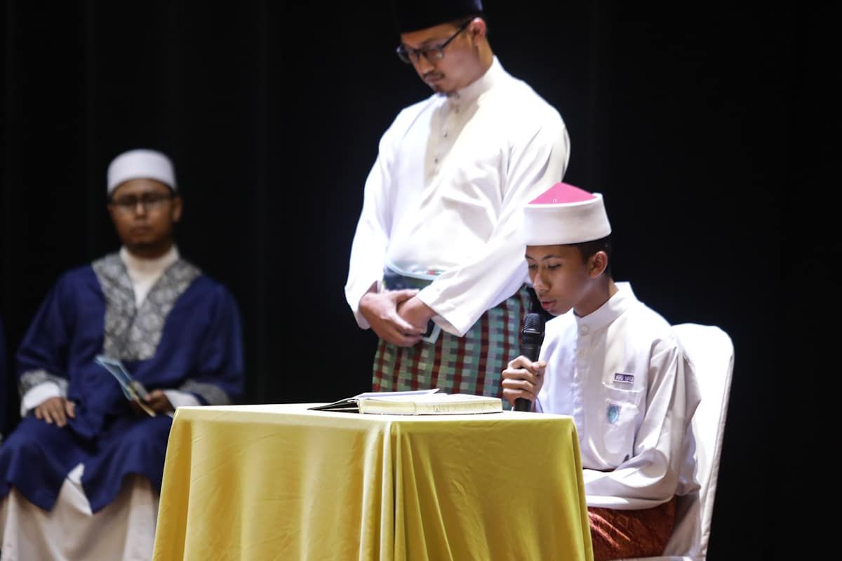 Bacaan Al-Quran oleh seorang pelajar sebelum Majlis Graduasi Qurra' Maahad Integrasi Tahfiz Negeri Selangor kali ke7 di Bangunan Sultan Abd Aziz Shah, Shah Alam pada 13 Mac 2020.