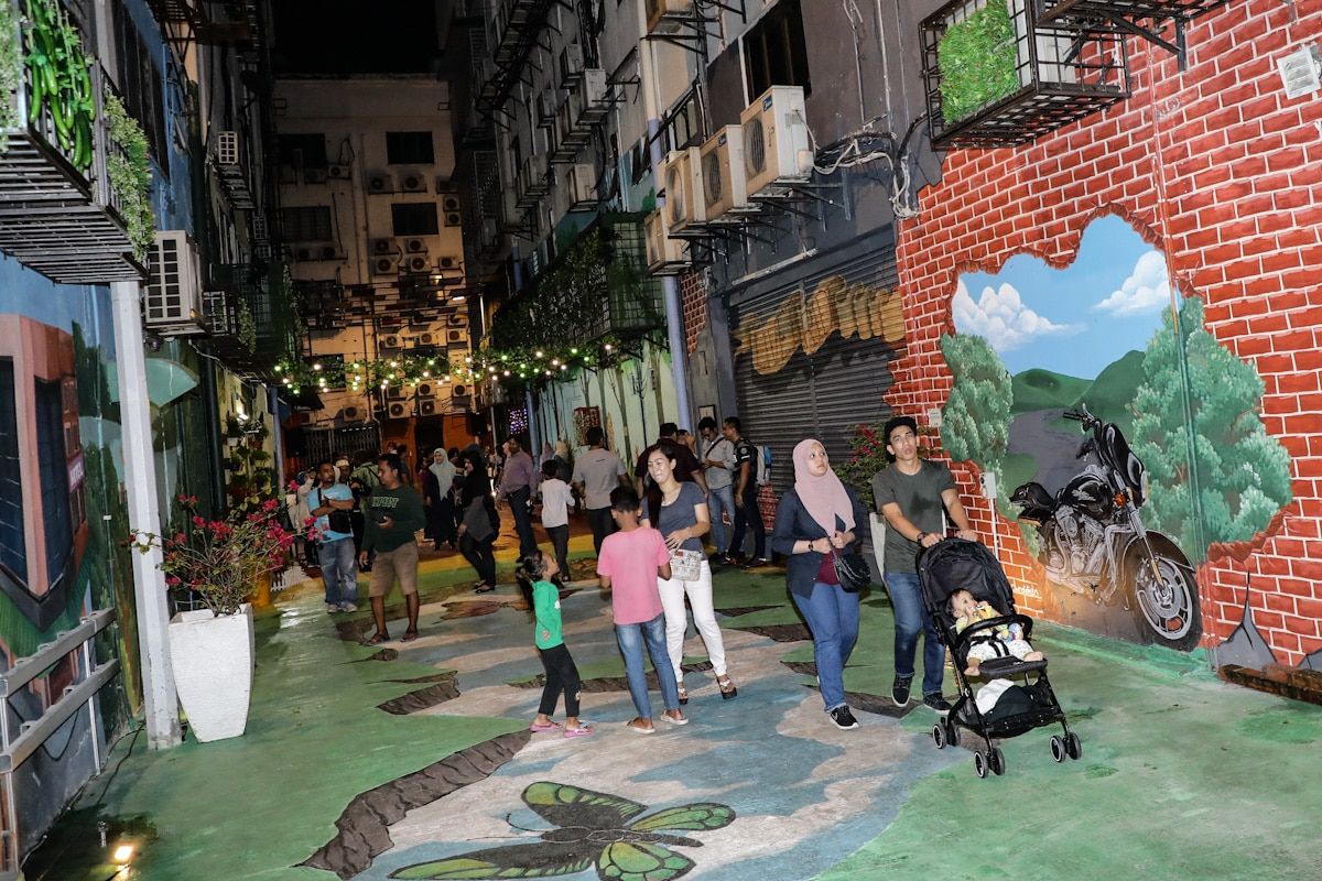 Orang ramai melawat kawasan yang dihiasi dengan lukisan mural sempena perasmian Tapak Senario Ampang, Ampang pada 20 Disember 2019.