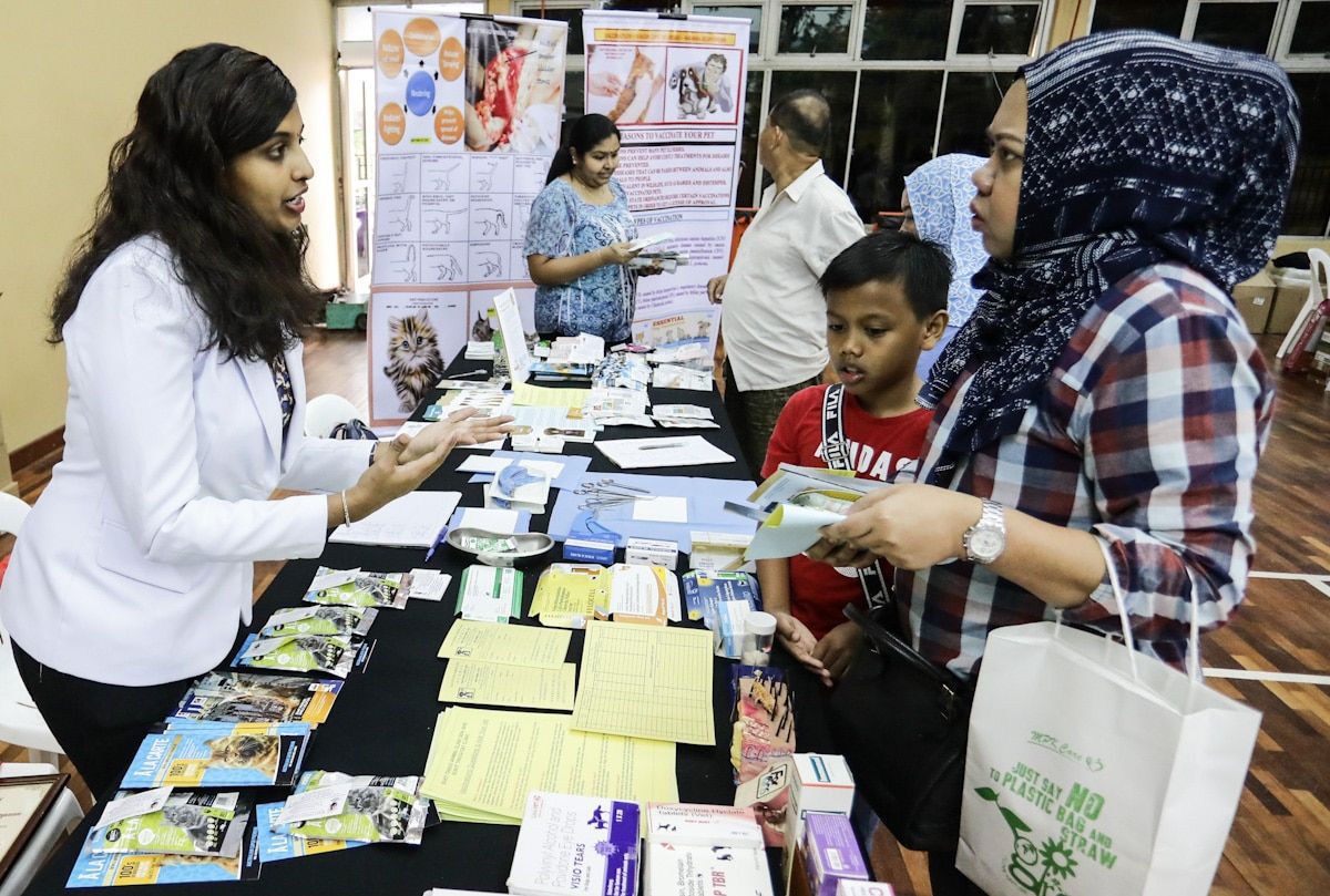 Orang ramai berpeluang bertanyakan terus kepada doktor haiwan tentang kesihatan kucing mereka sempena Program Kesedaran Haiwan Kesayangan, Kucing Angkat Dan Perlesenan Anjing di Dewan Kompleks Sukan Pandamaran, Klang pada 28 Disember 2019.