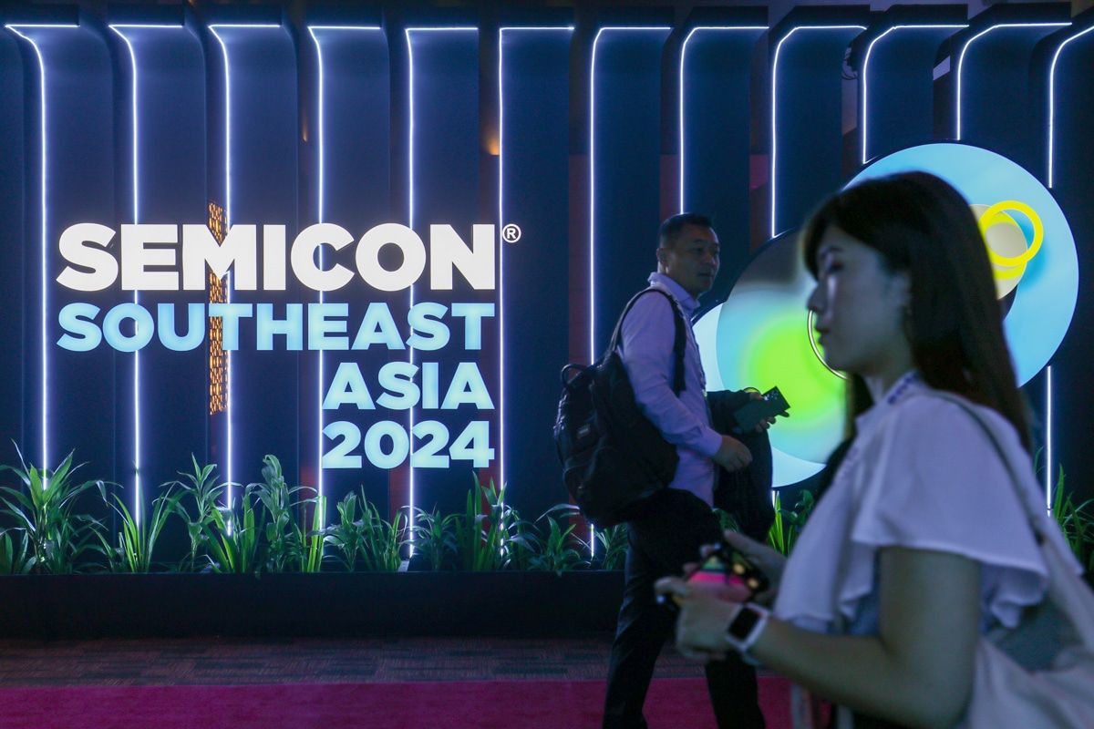 Peserta melintasi skrin paparan digital ketika majlis pembukaan SEMICON Asia Tenggara 2024 di MITEC, Kuala Lumpur pada 28 Mei 2024.