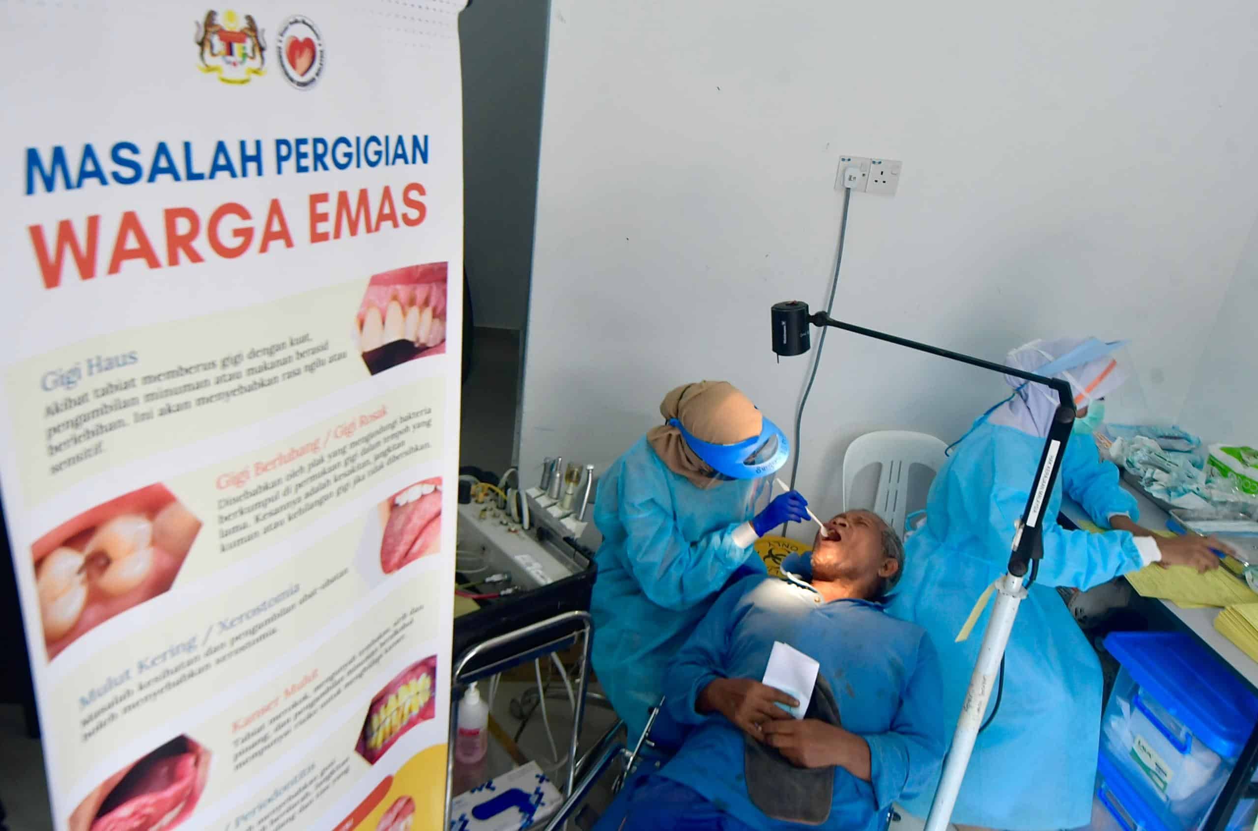 Penduduk membuat pemeriksaan gigi ketika program Saringan Kesihatan di Dewan Orang Ramai, Kampung Orang Asli Tun Abdul Razak, Kuala Kubu Bharu pada 02 Mei 2024.