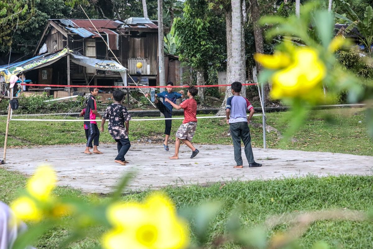 Penduduk bermain sepak takraw ketika tinjauan di Kampung Orang Asli Tun Abdul Razak, Hulu Selangor 3 Mei 2024.