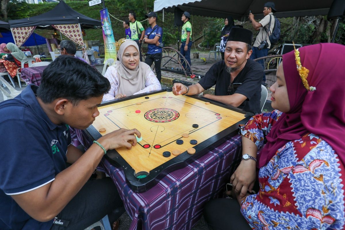 Pengunjung bermain karom ketika tinjauan di Bazar Warisan Temasya Jalanan Kuala Kubu Bharu, Hulu Selangor pada 4 Mei 2024.