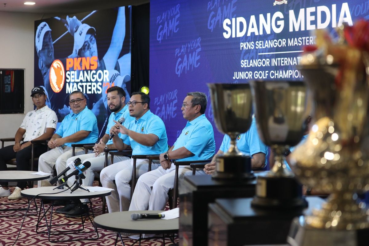 Dato’ Menteri Besar Dato’ Seri Amirudin Shari bercakap ketika sidang media Selangor International Junior Golf Championship 2024 dan PKNS Selangor Masters 2024 di Kelab Golf Seri Selangor pada 30 Mei 2024.
