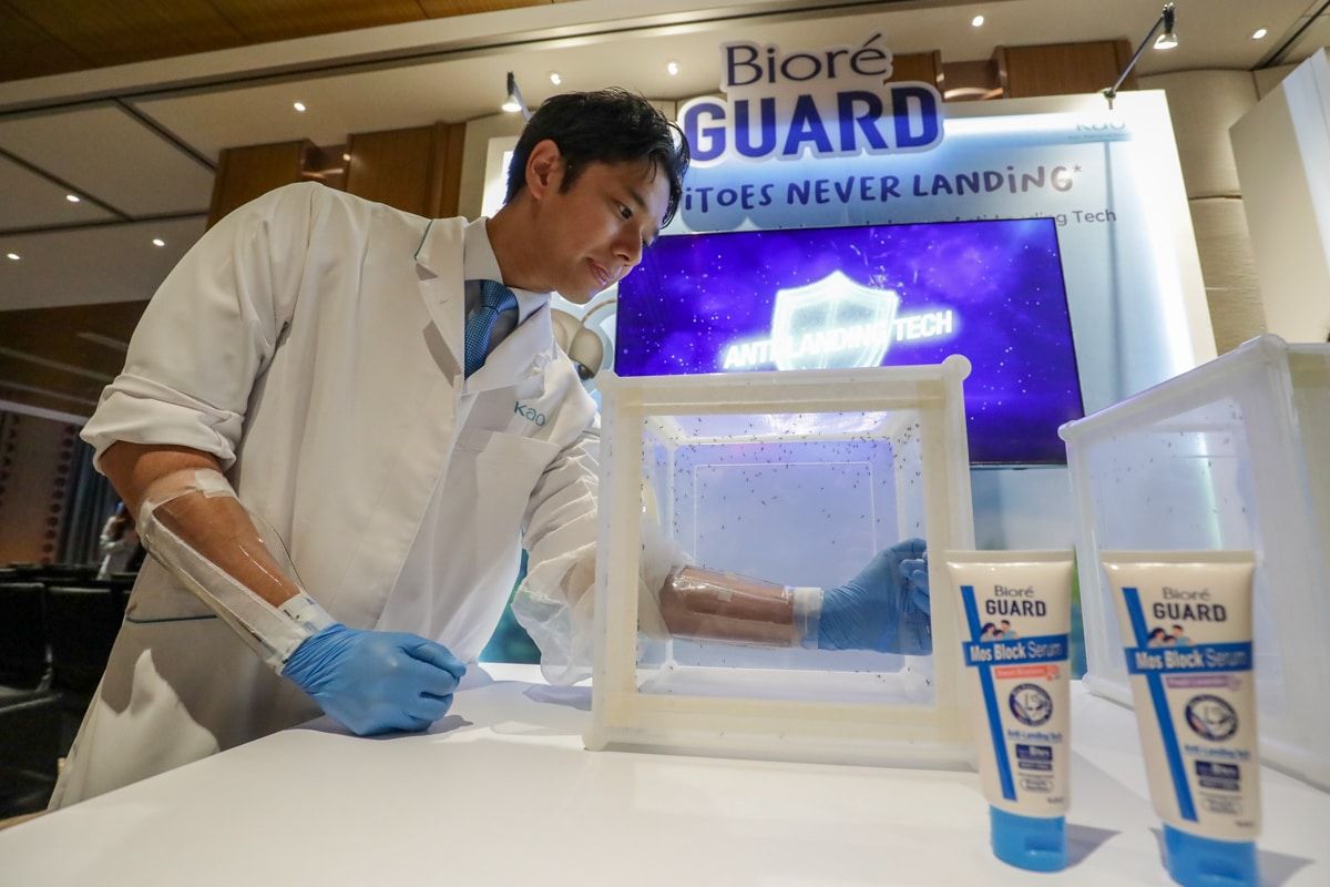 Pempamer melakukan demo penggunaan produk penghalau nyamuk baharu ketika majlis pelancaran Biore Guard Mos Block Serum di Hotel One World, Petaling Jaya pada 13 Jun 2024.