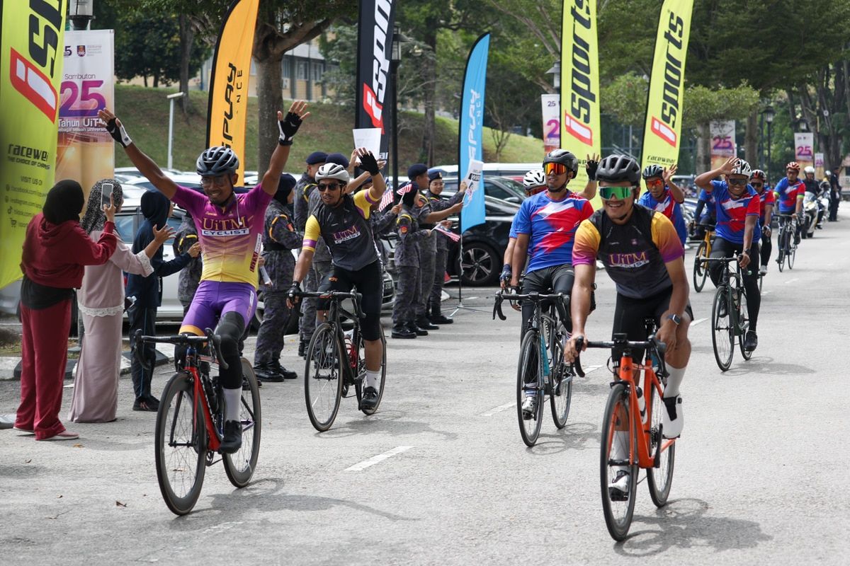 Peserta menamatkan Kayuhan Kapsul 25 Tahun Rentas Cawangan di Universiti Teknologi MARA (UiTM), Shah Alam pada 2 Julai 2024.