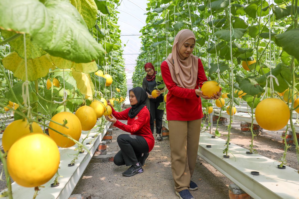 Petugas Perbadanan Kemajuan Pertanian Selangor (PKPS) meninjau tanaman melon yang akan di tuai pada program Agrobandar Tanaman Melon di Persiaran Pandan 9, Ampang Jaya pada 24 Februari 2024.