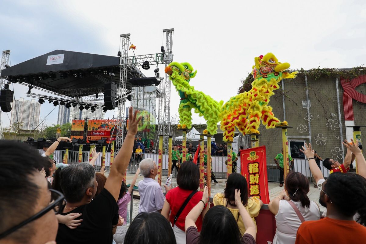 Orang ramai melihat persembahan tarian singa ketika majlis sambutan Tahun Baharu Cina 2024 peringkat Selangor di IOI Resort City, Putrajaya pada 24 Februari 2024.