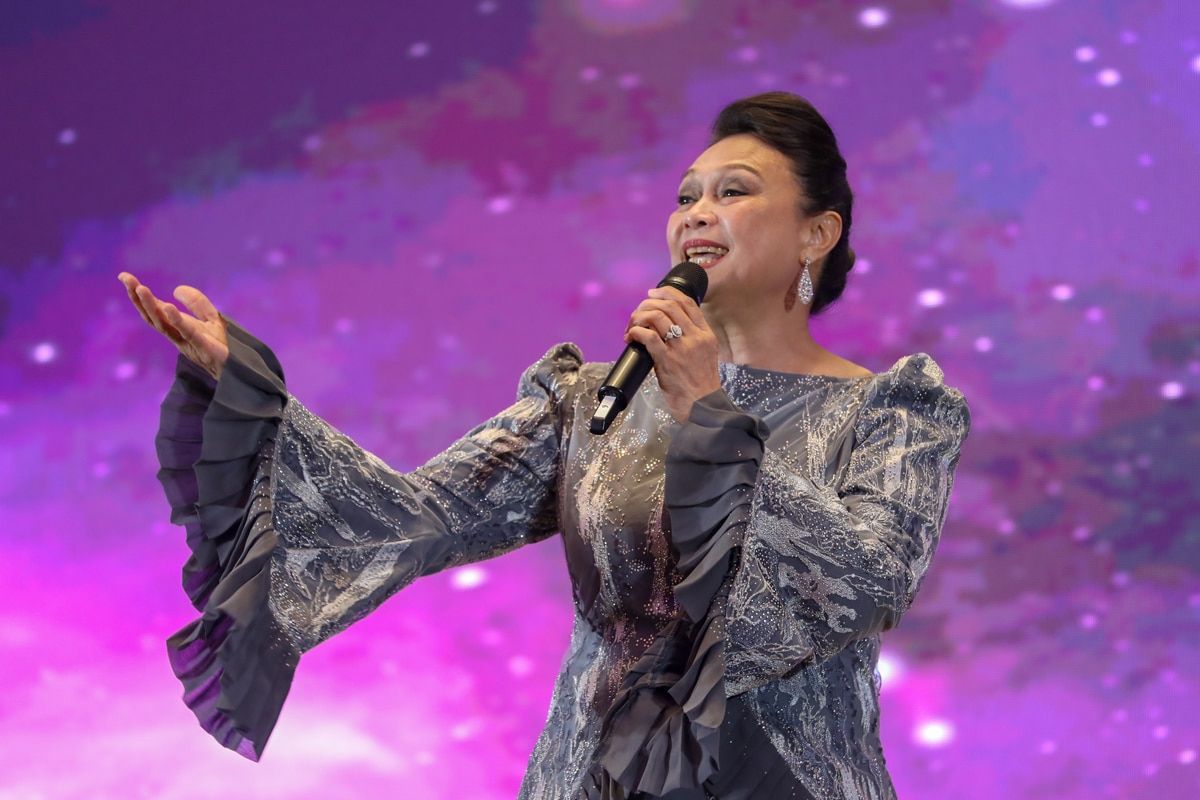 Persembahan nyanyian Dato' Khadijah Ibrahim ketika majlis Santapan Petang bersama Duli Yang Maha Mulia Tengku Permaisuri sempena Ulang Tahun ke-40 Puspanita Negeri Selangor di Pusat Konvensyen MBSA, Shah Alam pada 4 Mac 2024.