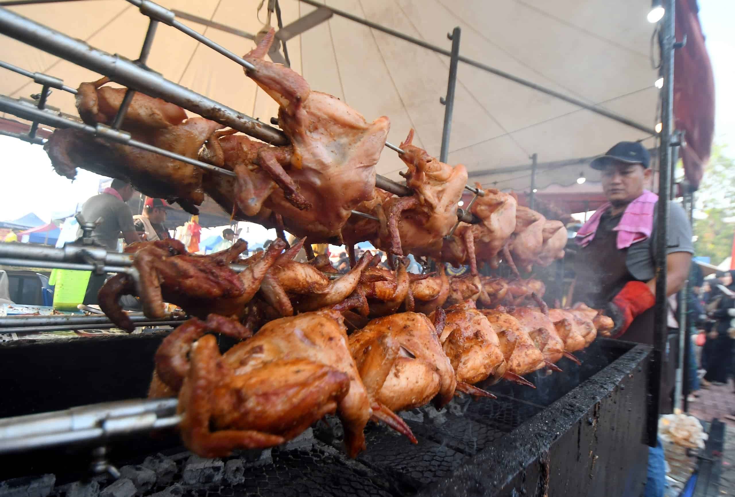 Peniaga membakar ayam golek unutuk dijual kepada pelanggan sebagai juadah berbuka puasa ketika tinjauan di Bazar Ramadan Stadium Shah Alam pada 16 Mac 2024.