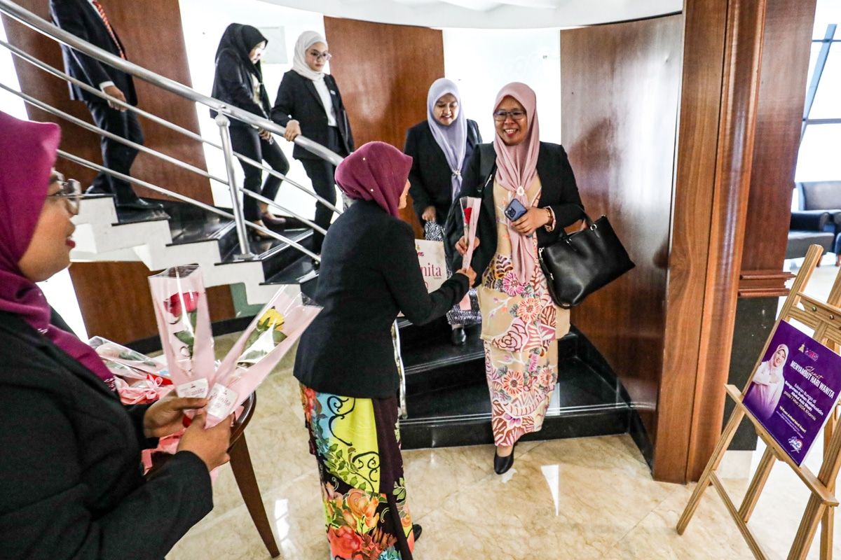 Wanita Berdaya Selangor (WBS) mengedarkan bunga sempena sambutan Hari Wanita selepas Persidangan Penggal Kedua Dewan Negeri Selangor (DNS) ke-15 di luar Dewan Undangan Negeri, Shah Alam pada 7 Mac 2024.