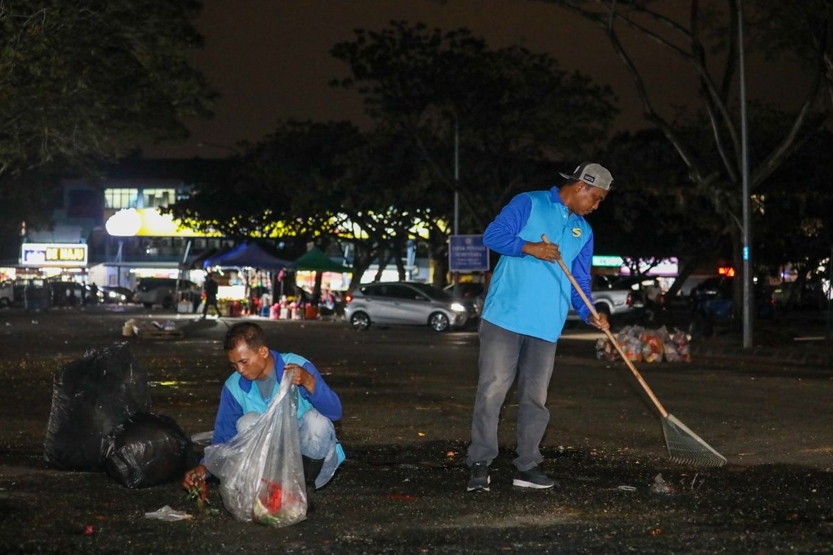 Petugas kebersihan mengutip sampah sekitar bazar ramadan ketika tinjauan kutipan sampah oleh KDEB Waste Management Sdn Bhd (KDEBWM) di Bazar Ramadan Seksyen 19, Shah Alam pada 17 Mac 2024.