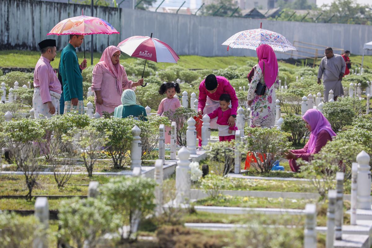 Orang ramai menziarahi tanah perkuburan ketika tinjauan Media Selangor ketika Hari Raya Aidilfitri di Tanah Perkuburan Islam Taman Medan PJS4, Petaling Jaya pada 22 April 2023.