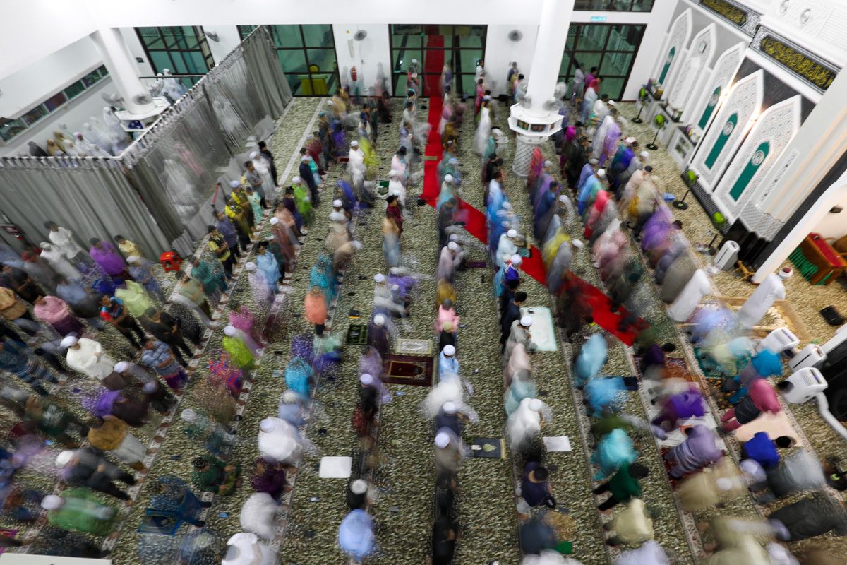 Jemaah menunaikan solat sunat terawih selepas majlis Perasmian Masjid dan majlis Berbuka Puasa di Masjid At-Taqwa, Bandar Bukit Mahkota, Hulu Langat pada 6 April 2023.