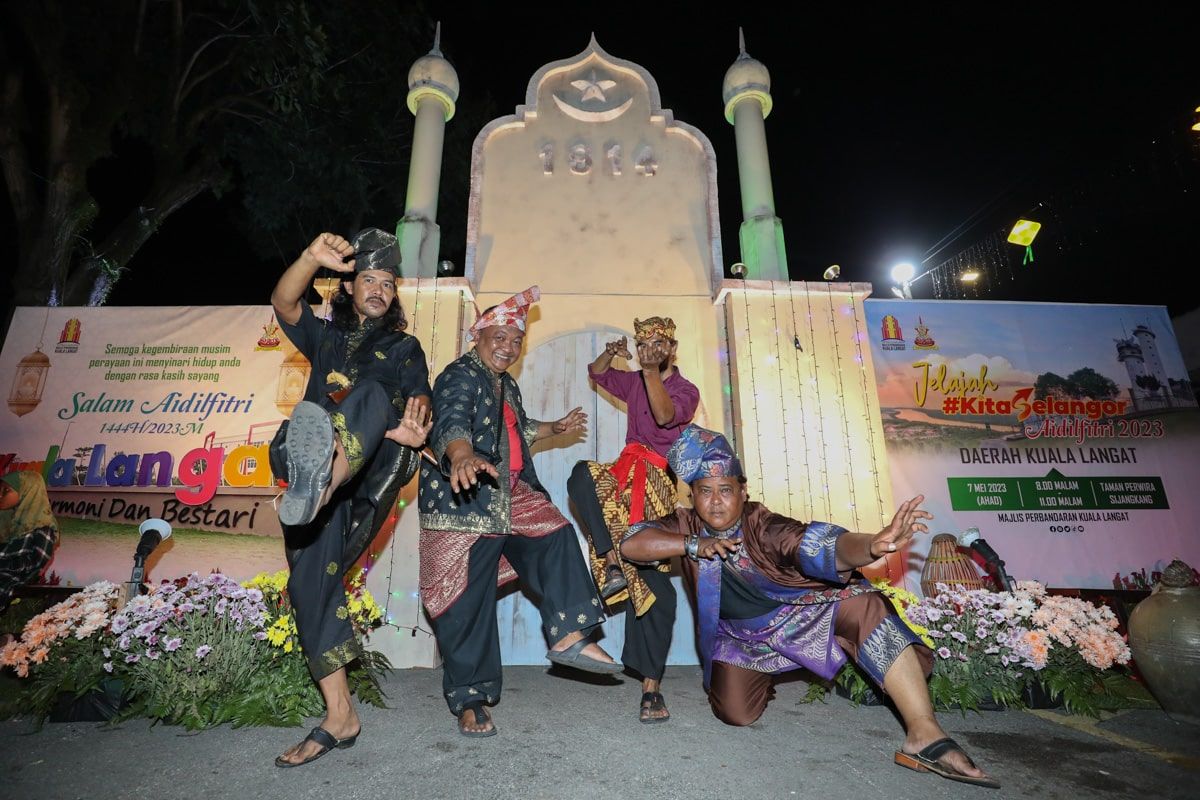 Penduduk menggayakan busana melayu ketika menghadiri majlis Rumah Terbuka Jelajah Kita Selangor Aidilfitri daerah Kuala Langat di Taman Perwira, Kuala Langat pada 7 Mei 2023.