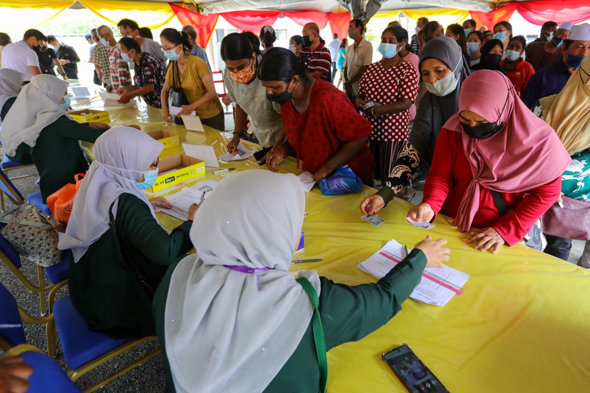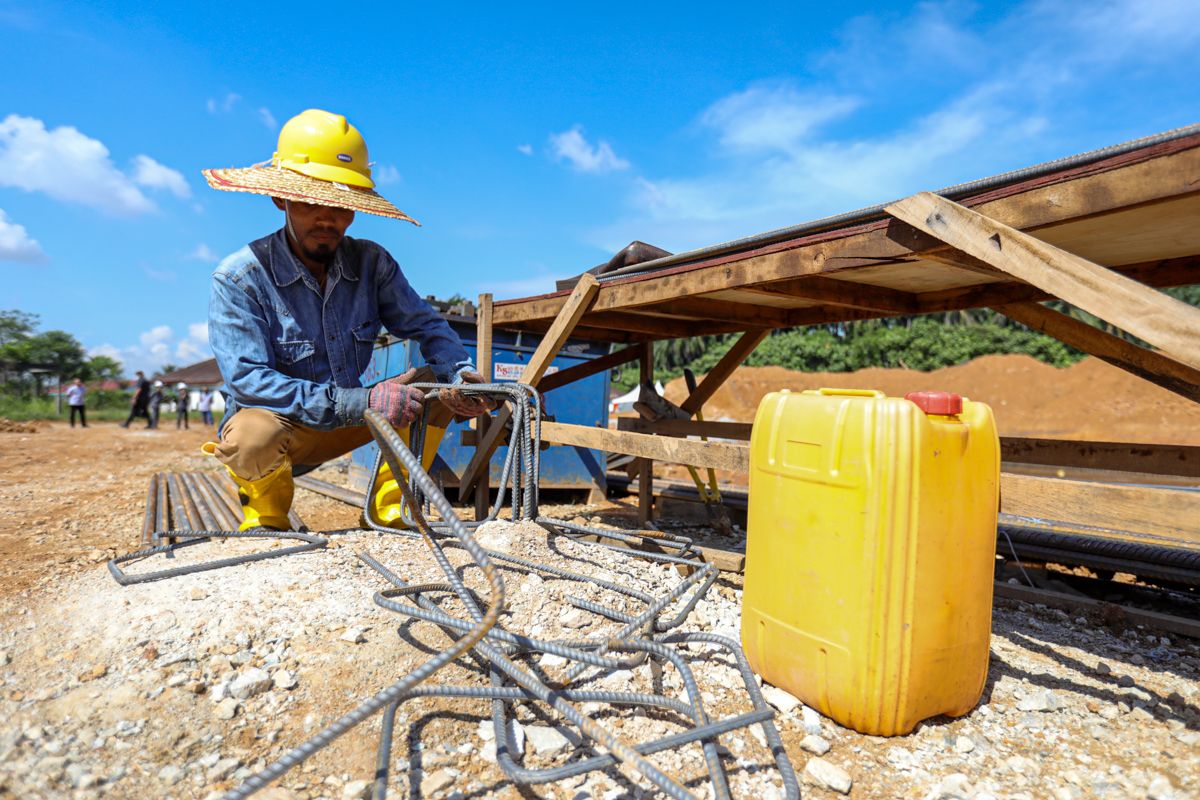 Penerima rumah, Mohamad Noor Soyona (kanan) bersama isterinya Siti Habsah Sharifin (kanan) bergambar bersama replika kunci dihadapan rumah mereka selepas Majlis Penyerahan Kunci Rumah Kos Rendah di Taman Sungai Yu Indah, Kuala Selangor pada 12 September 2022.