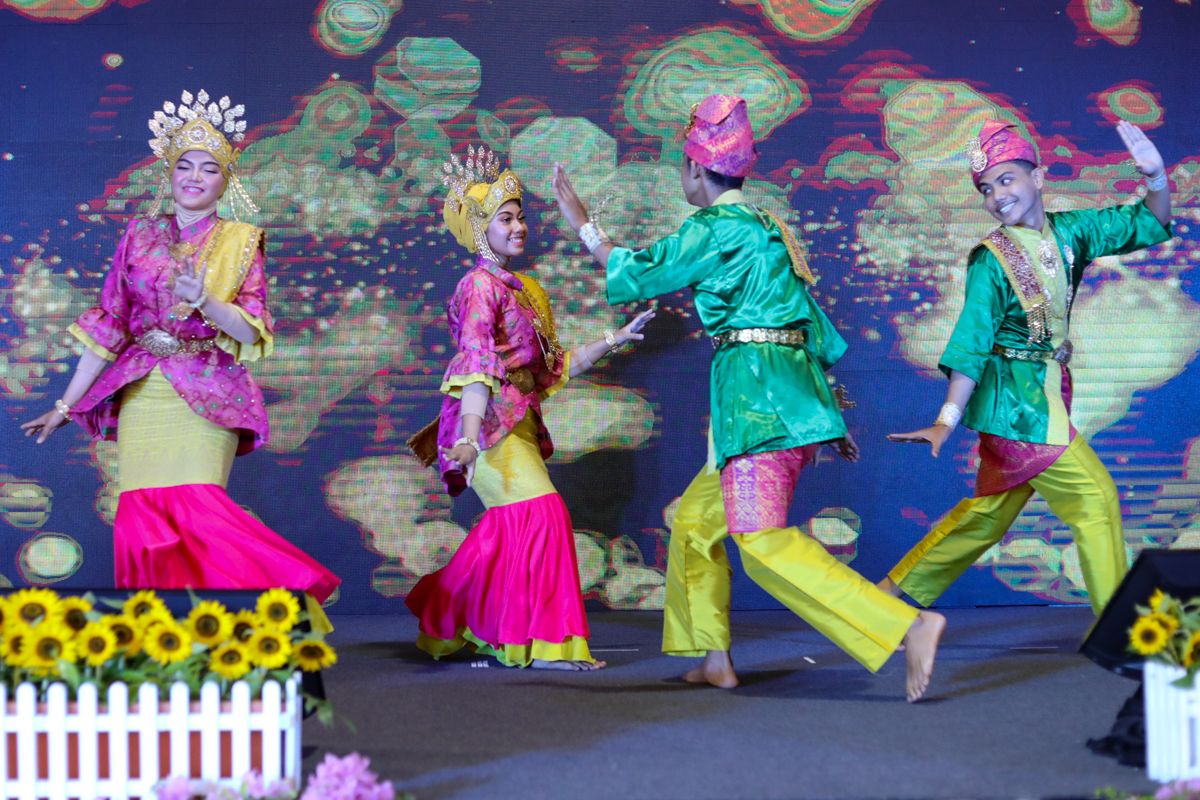 Kumpulan Tarian Bahari Kesuma Seri Tari, SMK Seri Keramat Gombak melakukan persembahan tarian tradisional ketika ketika Jelajah Selangor Penyayang di padang Taman Kosas, Ampang pada 19 Jun 2022.