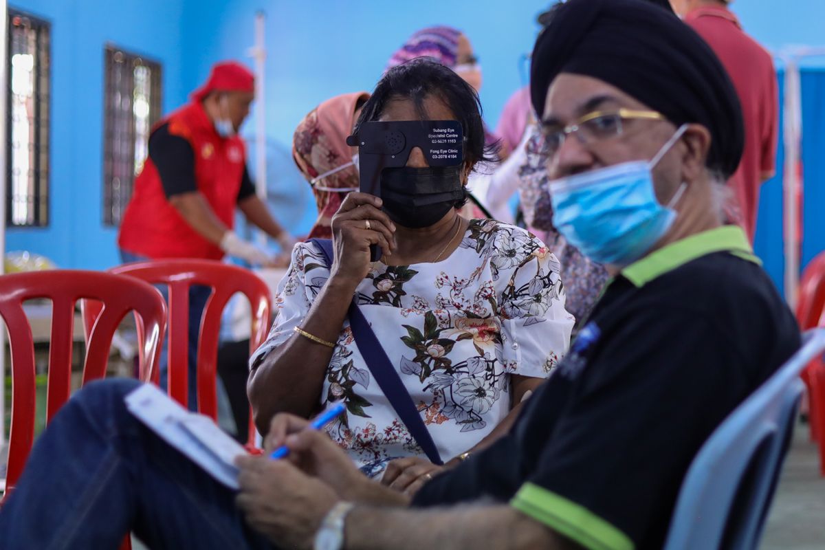 Peserta membuat pemeriksaan mata ketika program Selangor Saring DUN Sungai Ramal di Dewan Komuniti Seksyen 4, Hulu Langat pada 18 Jun 2022.