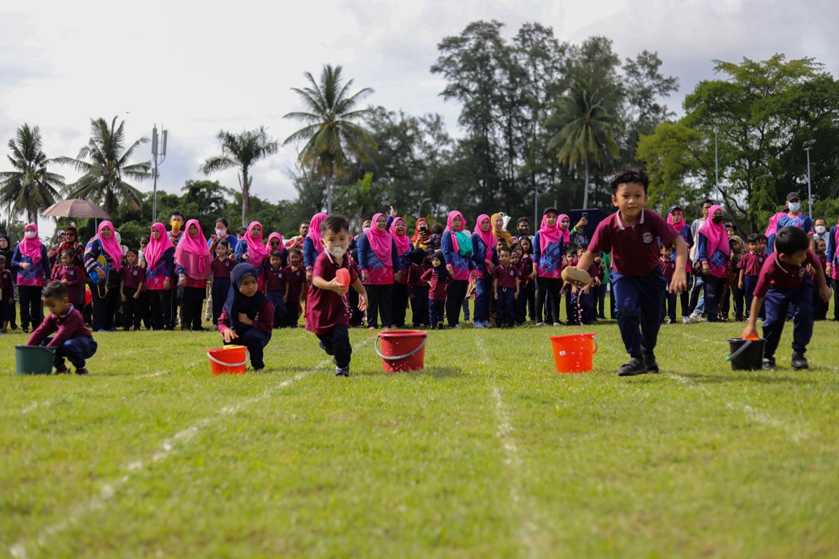 Kanak - kanak dari pelbagai tabika mengambil bahagian dalam sukaneka sempena Jelajah Selangor Penyayang 2022 di Dataran Pantai Morib, Kuala Langat pada 25 Jun 2022.