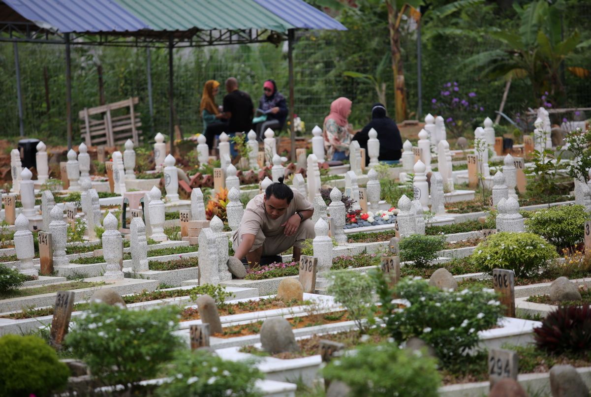 Sempena Aidilfitri mereka yang kehilangan orang tersayang menziarahi pusara di Tanah Perkuburan Bandar Tun Hussein Onn, Kajang pada 3 Syawal.