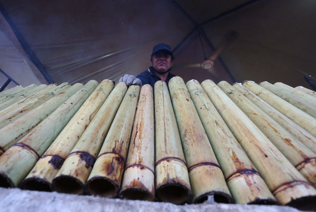Misran Satrawi menyusun lemang yang telah siap dibakar untuk dijual kepada pelanggan di Bandar Damai Perdana, Kajang pada 6 Mei 2022.