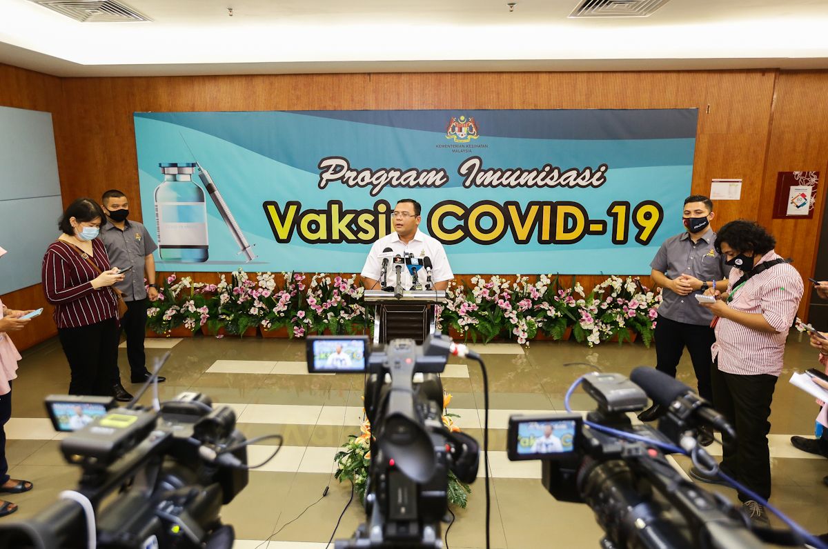 Dato' Menteri Besar Selangor, Dato' Seri Amirudin Shari bercakap ketika sidang media selepas menerima suntikan vaksin Covid-19 yang pertama di Selangor di Hospital Shah Alam pada 25 Februari 2021.