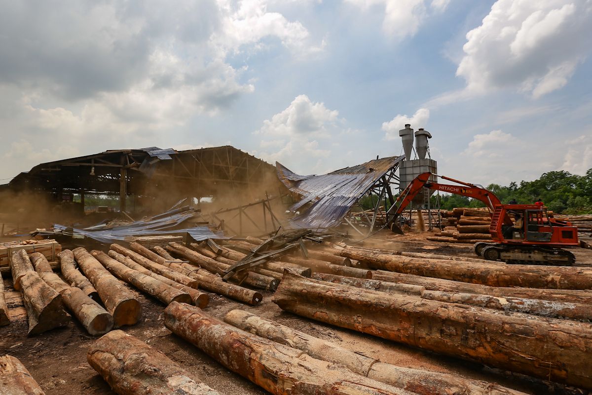 Penguat kuasa, Pejabat Daerah dan Tanah Klang merobohkan premis yang dibina tanpa kebenaran atas tanah Kerajaan Negeri Selangor di Jalan Jeti, Pelabuhan Klang pada 11 Mac 2021.