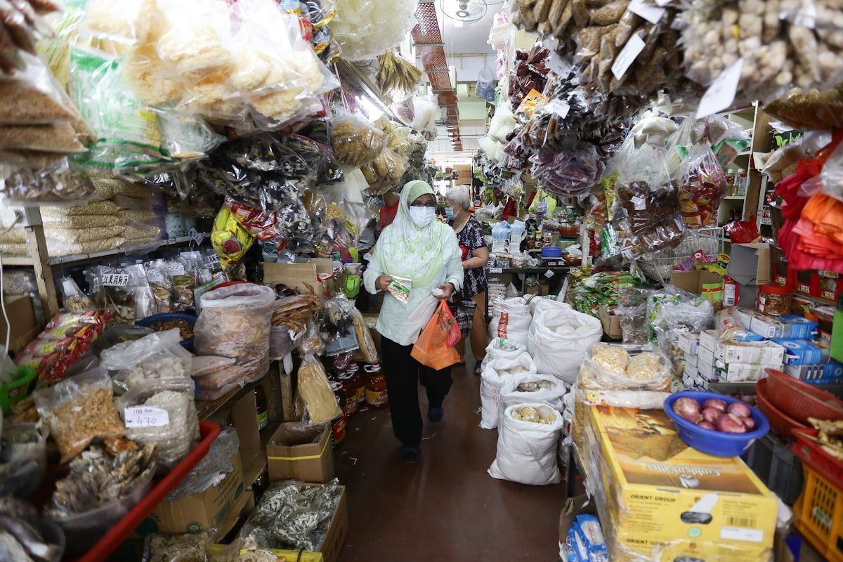 Suasana pelanggan membeli barangan keperluan di Pasar Awam Sri Gombak, Gombak pada 19 Jun 2020.