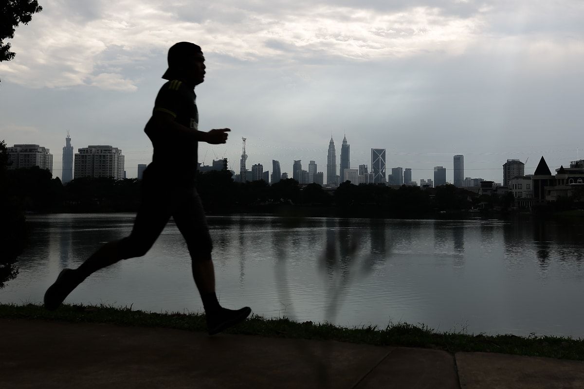 Orang awam berjoging di Taman Tasek Ampang Hilir, Kuala Lumpur pada 17 Jun 2020 berikutan Perintah Kawalan Pergerakan Pemulihan (PKPP) selepas Kerajaan membenarkan aktiviti riadah di taman awam.