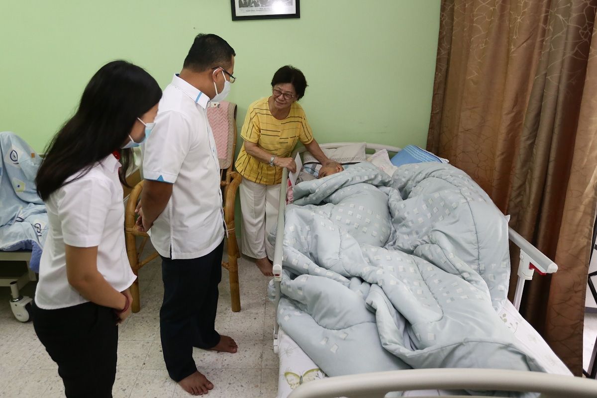 Dato' Menteri Besar Selangor, Dato' Seri Amirudin Shari (tengah) bersama ADN Kampung Tunku, Lim Yi Wei (kiri) menziarahi Datuk Ooi Eow Jin di Taman Sea, Petaling Jaya pada 27 Jun 2020.