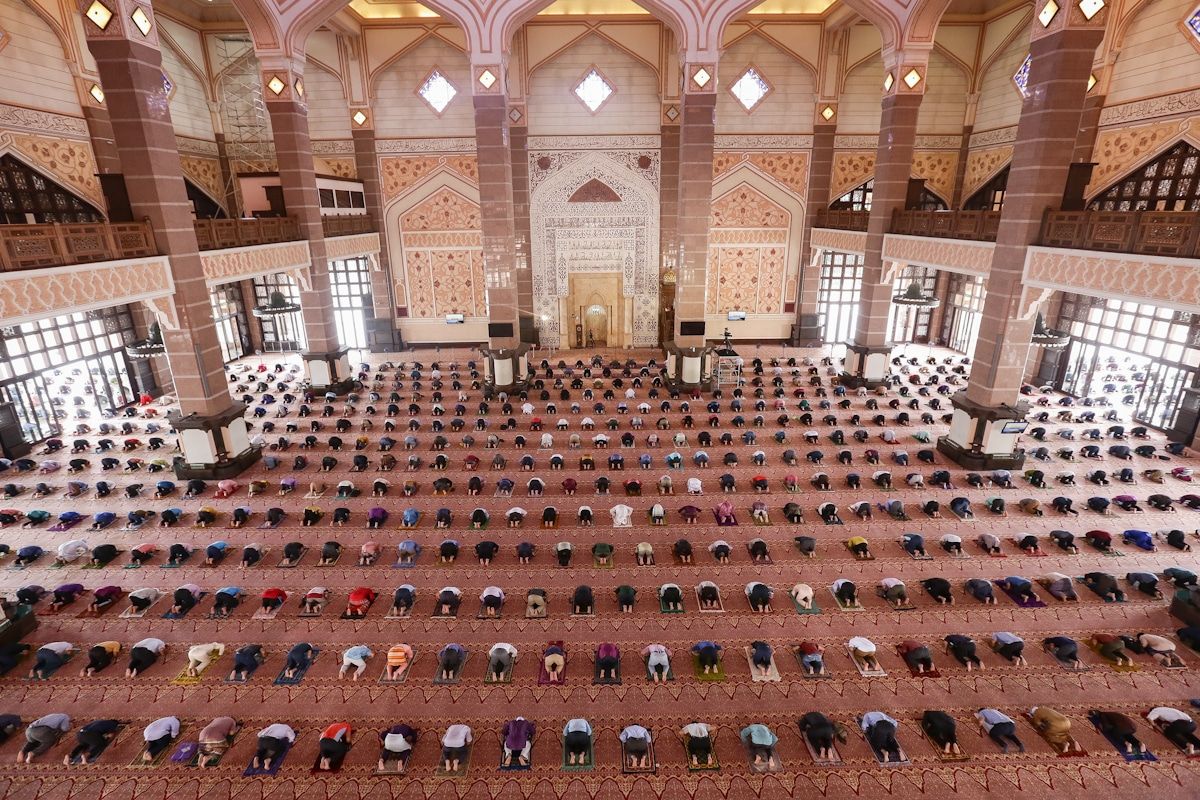 Orang awam dibenarkan solat Jumaat dengan mematuhi Prosedur Operasi Standard (SOP) ketika pelaksanaan Perintah Kawalan Pergerakan Pemulihan (PKPP) bagi membendung penularan COVID-19 di Masjid Putra, Putrajaya pada 19 Jun 2020.Foto HAFIZ OTHMAN/SELANGORKINI