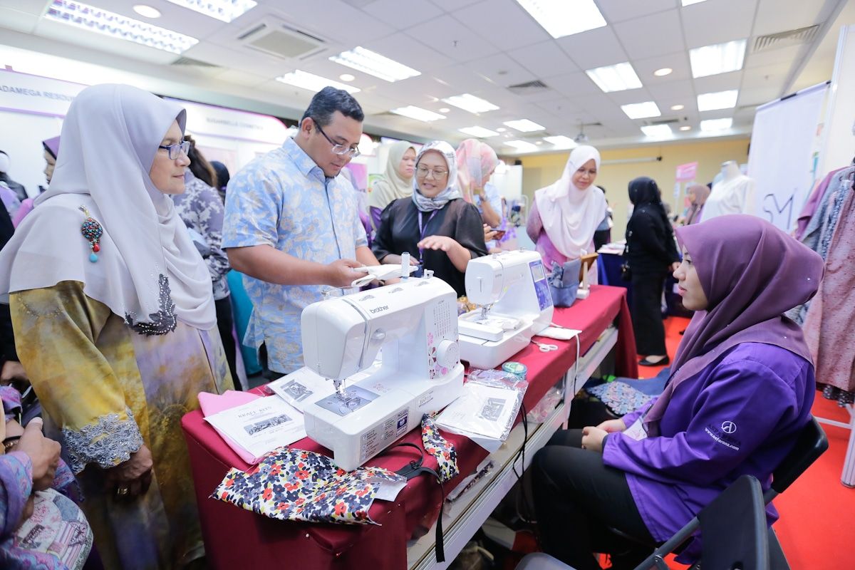 Chef Selebriti, Chef Yang Jamil (tengah) menunjukkan demonstrasi kopi tarik akicafe disaksikan Menteri Perdagangan Dalam Negeri dan Hal Ehwal Pengguna, Datuk Seri Saifuddin Nasution (kanan) ketika Persamian Kempen Beli Barangan Malaysia di Tesco Extra, Kajang pada 30 Januari 2020.