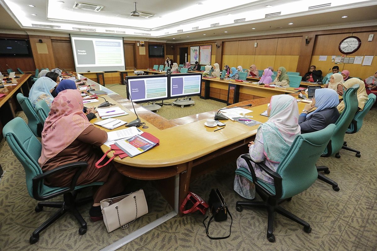 Exco Kerajaan Negeri Selangor Dr Mariah Mahmud (dua, kanan) ketika mendengar sesi Pembentangan Hasil Penyelidikan dan Perbincangan Meja Bulat Kajian Gender dalam amalan pekerjaan di kalangan golongan profesional negeri Selangor oleh IWB di MTES SUK, Shah Alam pada 27 September 2019.- Foto HAFIZ...