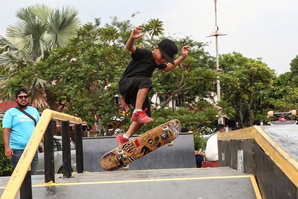 Aksi si cilik menunjukkan kebolehan bermain papan selaju, Shah Alam | REMY ARIFFIN