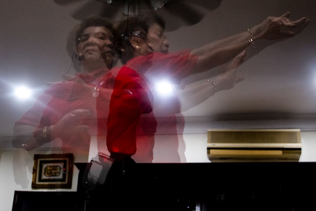 Jamilah Abdullah, 76, mempamerkan gerakan ‘membelah mega’ ketika melakukan senaman taichi di kediamannya di Seksyen 8, Shah Alam pada 8 Februari 2021.