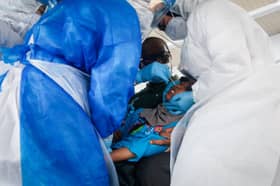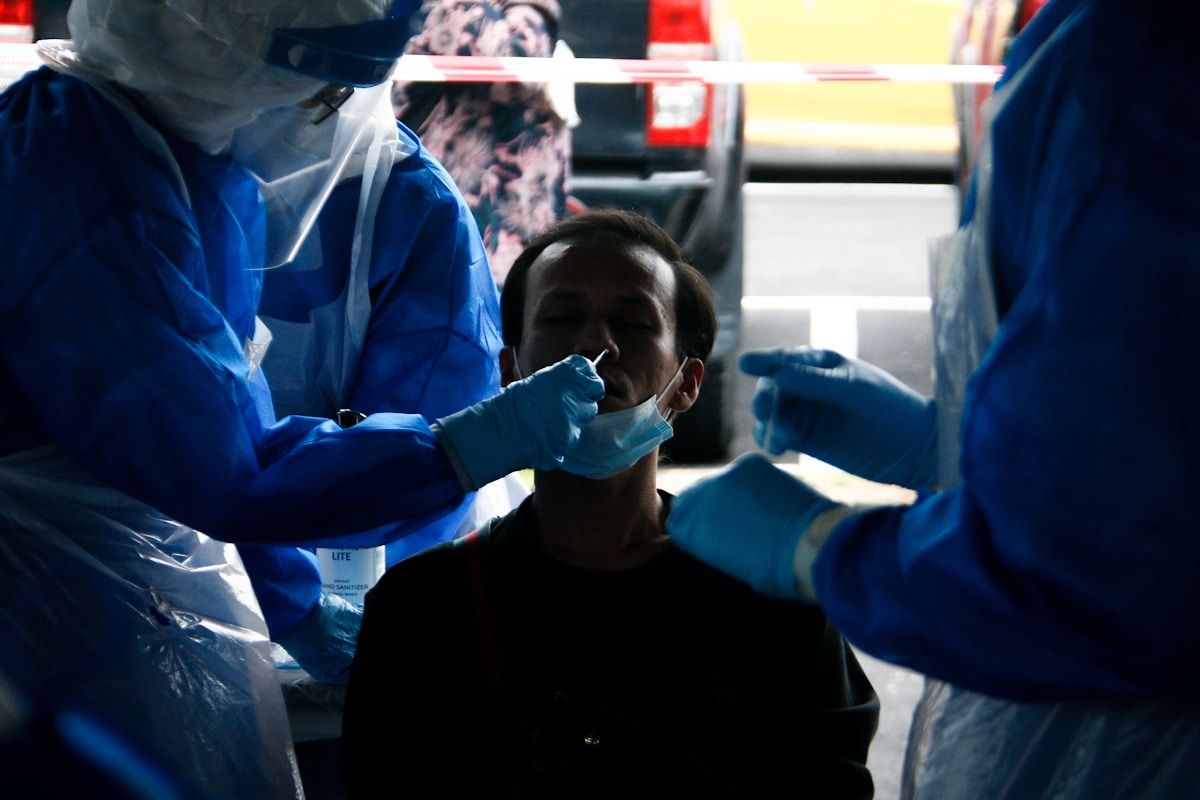 Warganegara Bangladesh Rabiul Awal, 33, yang bekerja di sebuah pusat mencuci kereta menjalani ujian calitan dalam program saringan komuniti Covid-19 Taman Sri Muda, Shah Alam pada 7 Januari 2021.