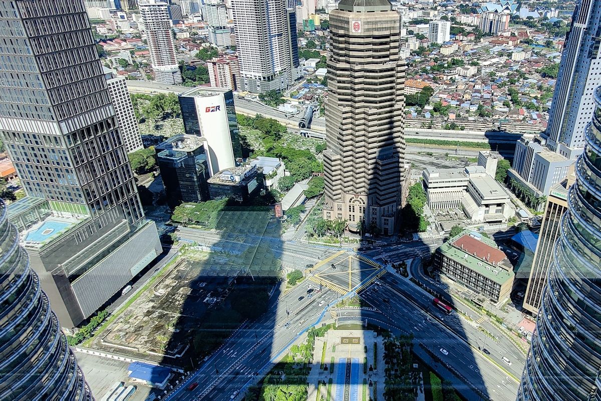 Pemandangan pusat bandar Kuala Lumpur memaparkan bayang Menara Berkembar Petronas (KLCC) ketika imej dirakamkan dari tingkat 86 menara itu pada 27 Disember 2020.