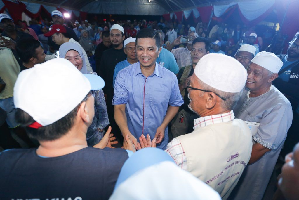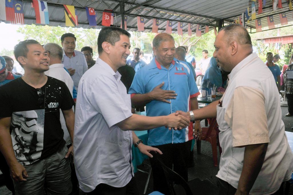 Dato' Seri Mohamed Azmin Ali menyantuni masyarakat setempat yang hadir di ceramah Pakatan Harapan, Sementa.