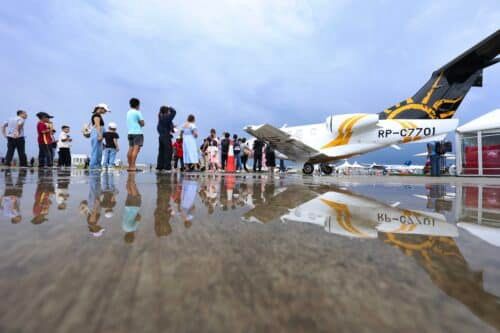 Pengunjung beratur bagi mengambil peluang meninjau pesawat RP-C7701 Camaya Air ketika Pameran Udara Selangor (SAS) 2024 di Pusat Penerbangan Serantau (RAC) Skypark, Shah Alam pada 13 Septembar 2024. Foto NUR ADIBAH AHMAD IZAM/MEDIA SELANGOR