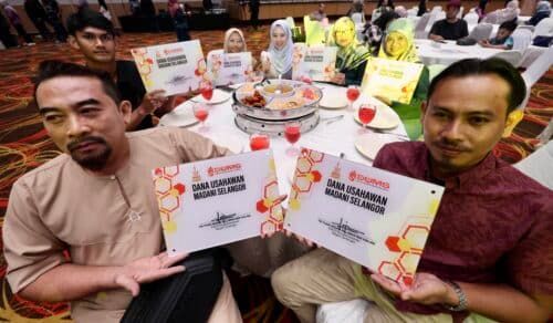 Usahawan menunjukkan Plak Dana Usahawan Madani Selangor 2024 ketika penyampaian plak tersebut dari EXCO Usahawan Najwan Halimi di Dewan Jubli Perak pada 11 Oktober 2024.